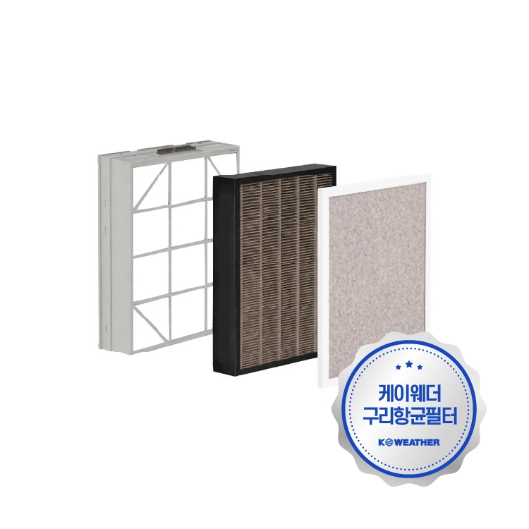 필터 구성품: 항균 필터 HEPA급 1개 + 항균 프리필터(RA/환기) 1개 + 항균 프리필터(OA/외기) 1개